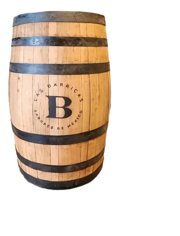 Diferencia con el Sin Raspar: El barril raspado tiene la corteza y manchas exteriores removidas, dejando la madera limpia y con un tono claro natural. Es ideal cuando quieres un look mas elegante o cuando vas a agregar grabado personalizado (logos, nombres, fechas).