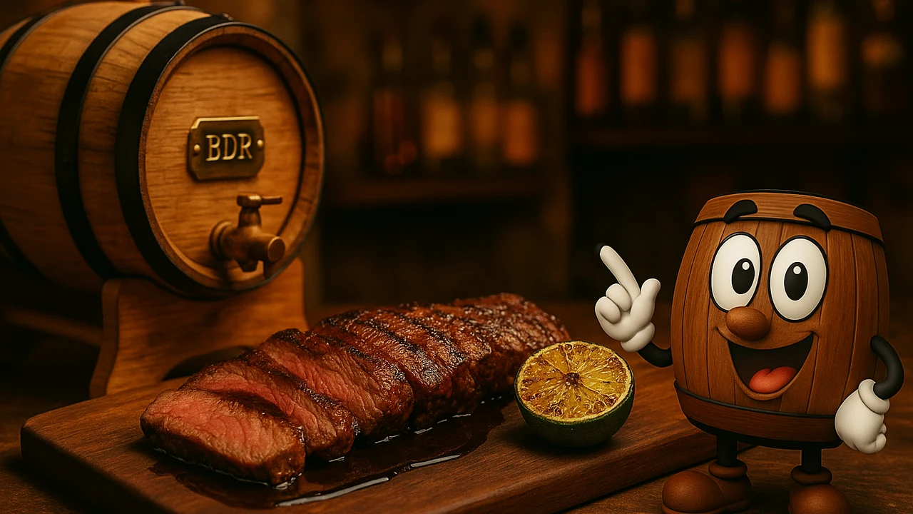 La arrachera es el corte icónico del norte mexicano. Aquí se acompaña con una salsa de reducción de mezcal reposado en barrica de roble, que aporta complejidad ahumada y dulzor de caramelo. Un corte sencillo elevado a nivel de restaurante de autor.