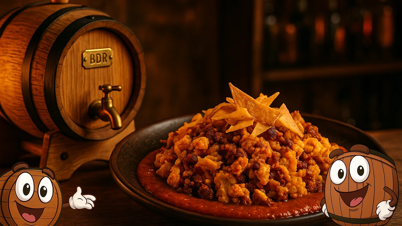 Cualquier salsa añeja en barrica funciona. La taquera (receta #1) añade ahumado complementario al chorizo.