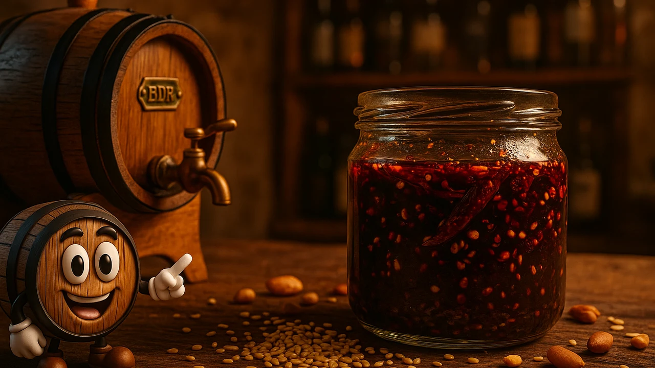 La salsa macha veracruzana toma otro nivel cuando el aceite base se infusiona en barril de roble 2 semanas antes de preparar la salsa. El aceite absorbe taninos y aromáticos del roble, potenciando el perfil de chile y semillas. Excelente en quesadillas, elotes, ensaladas y como condimento de mesa.