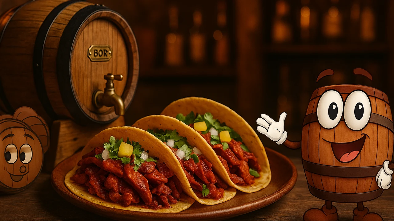 Los tacos al pastor chilangos elevados con adobo que reposa 4 semanas en barrica. El adobo gana profundidad, balance ácido-dulce-ahumado y cuerpo de restaurante. Se cocina en trompo casero improvisado (o sartén) para textura icónica.